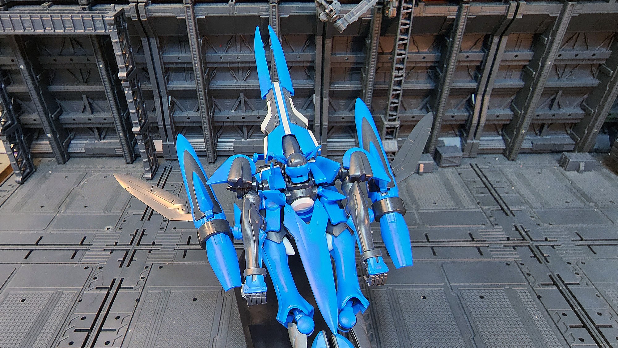 비행형태가 더 자연스러운 더블오 건담에 나오는 메카닉입니다~그래서 그런지 로봇형태일때는 팔다리,허리가 가늘어서 조금 빈약해 보이는 녀석입니다~