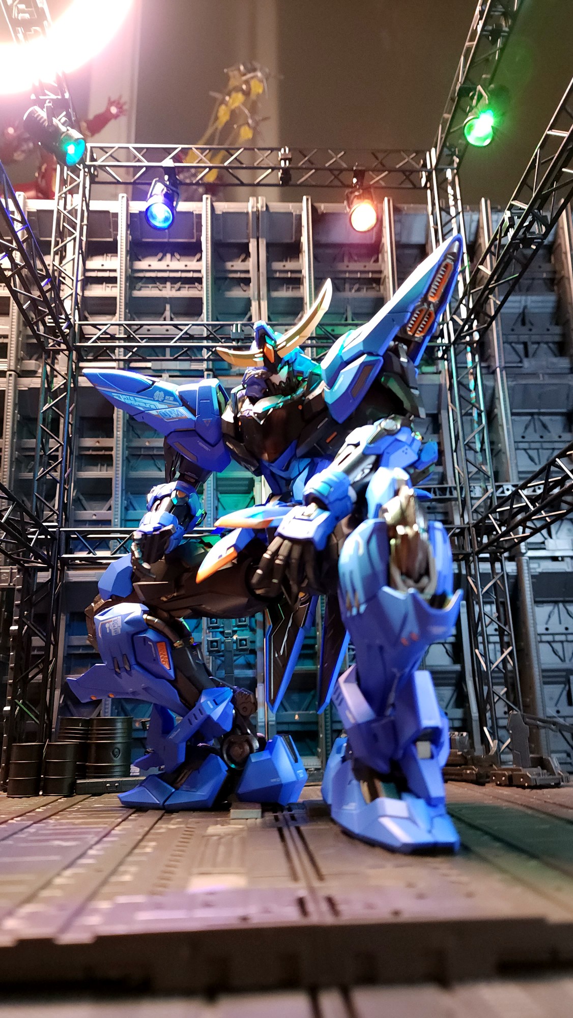 무게가 상당하지만 두발에는 강한 자석이 박혀있어서 전용스텐드인 철판에 세워두면 여러가지 포즈를 취해도 안정적입니다~