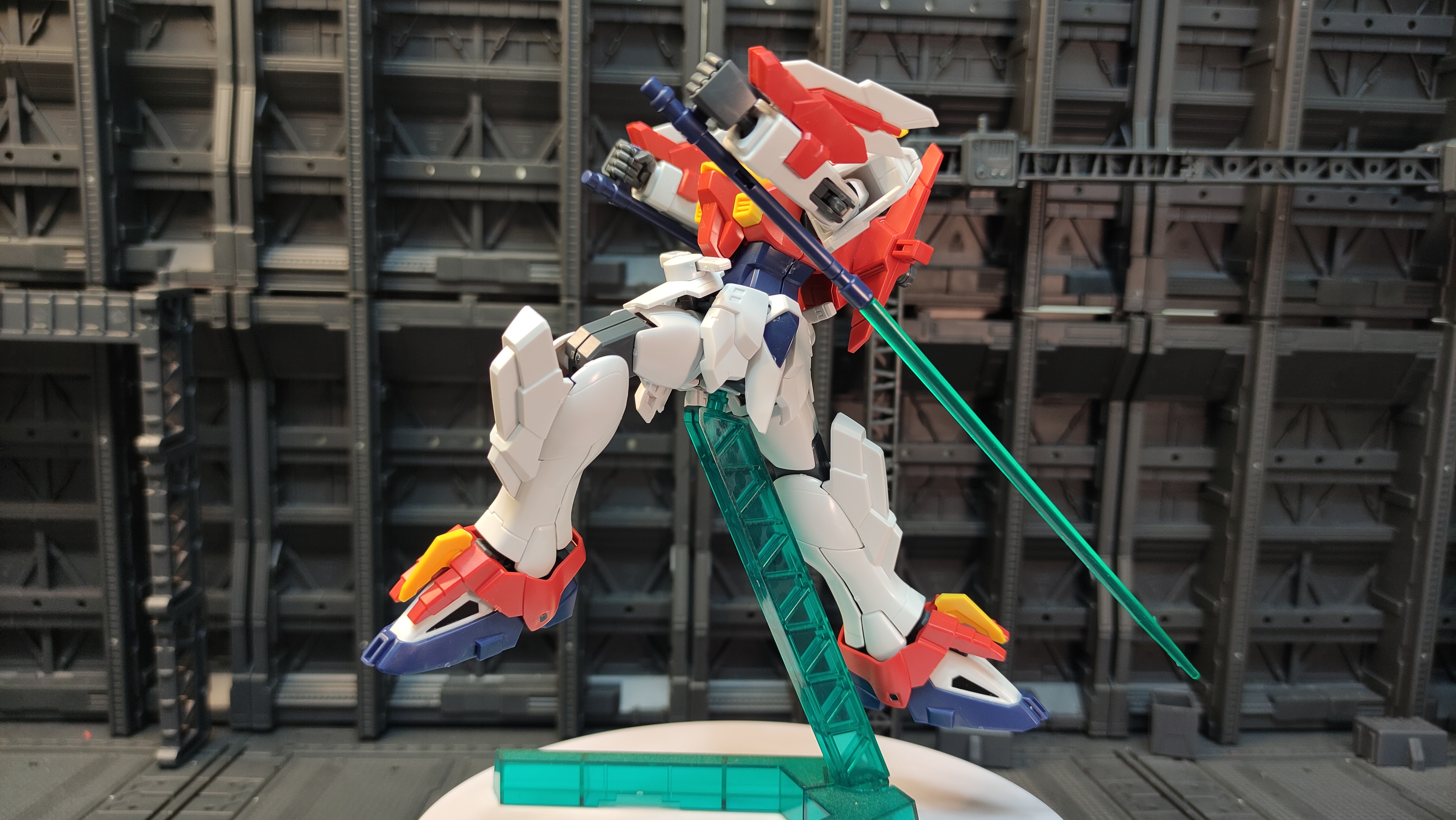 갓건담은 손을 사용하는 '갓핑거'가 있다면 이 기체는 발을 이용한 필살기가 있어서 발쪽에 클리어 부품이 부속되어 있습니다.